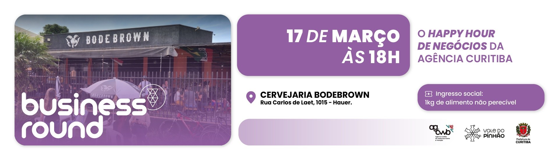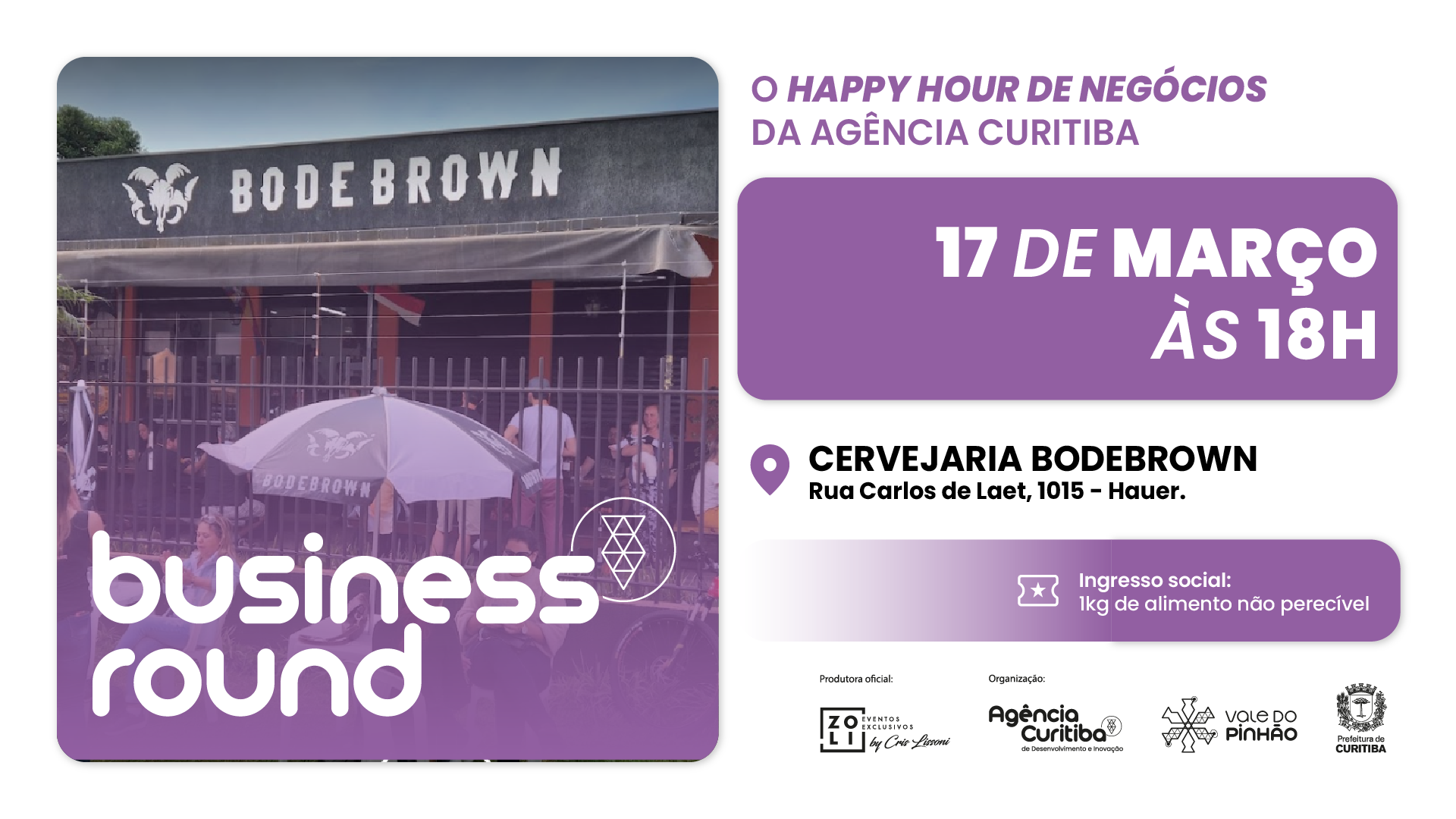 O Business Round retorna no dia 17 de março, em um dos pontos mais icônicos de Curitiba: a Cervejaria Bodebrown, a partir das 18h, reunindo pessoas que acreditam no poder das conexões para impulsionar ideias e negócios.