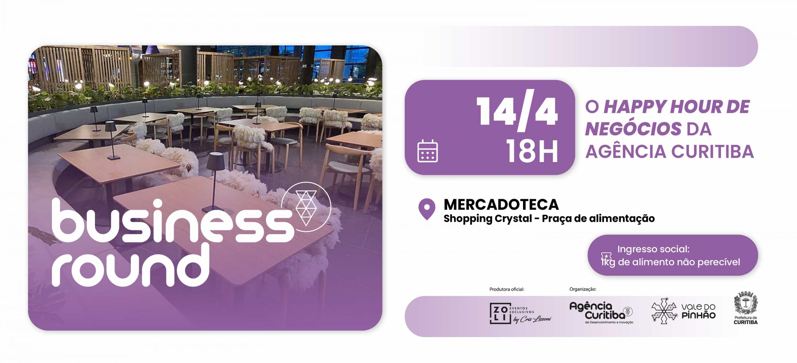 O Business Round é um happy hour de negócios que conecta pessoas, ideias e oportunidades em um ambiente descontraído e inspirador. Promovido pela Agência Curitiba de Desenvolvimento e Inovação, o evento reúne empreendedores, profissionais, investidores e entusiastas do ecossistema de inovação para fortalecer conexões e gerar novas parcerias.