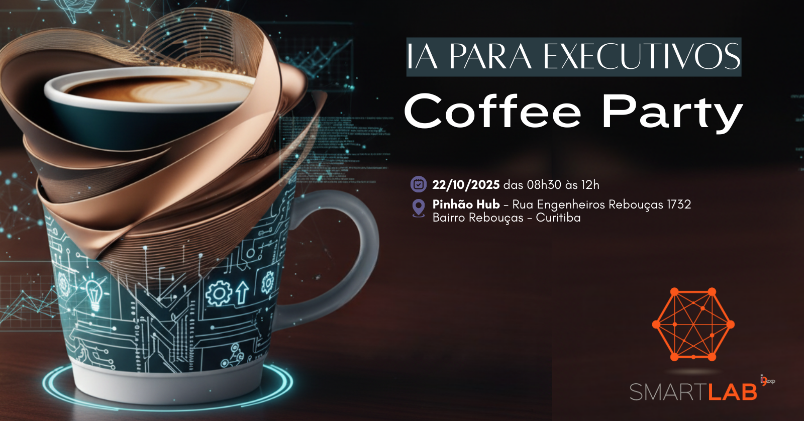 Garanta seu lugar e venha viver essa experiência SmartLAB. https://www.sympla.com.br/evento/coffee-party--ia-para-executivos----curitiba/3090632