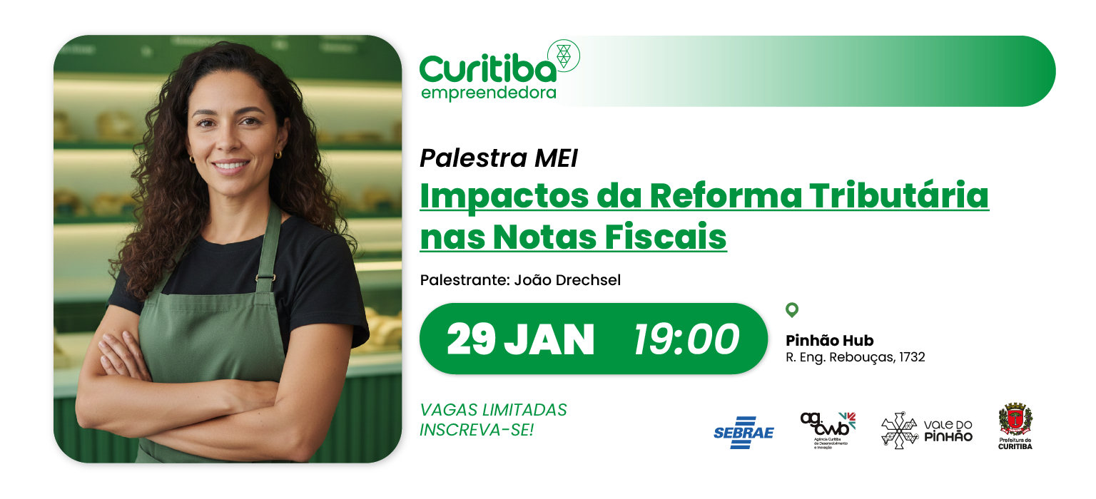 Participe da palestra “Impactos da reforma tributária nas notas fiscais do MEI e descubra como as mudanças impactarão o seu dia a dia. Prepare-se para entender, de forma simples e direta, as novas regras e como se adaptar com confiança.